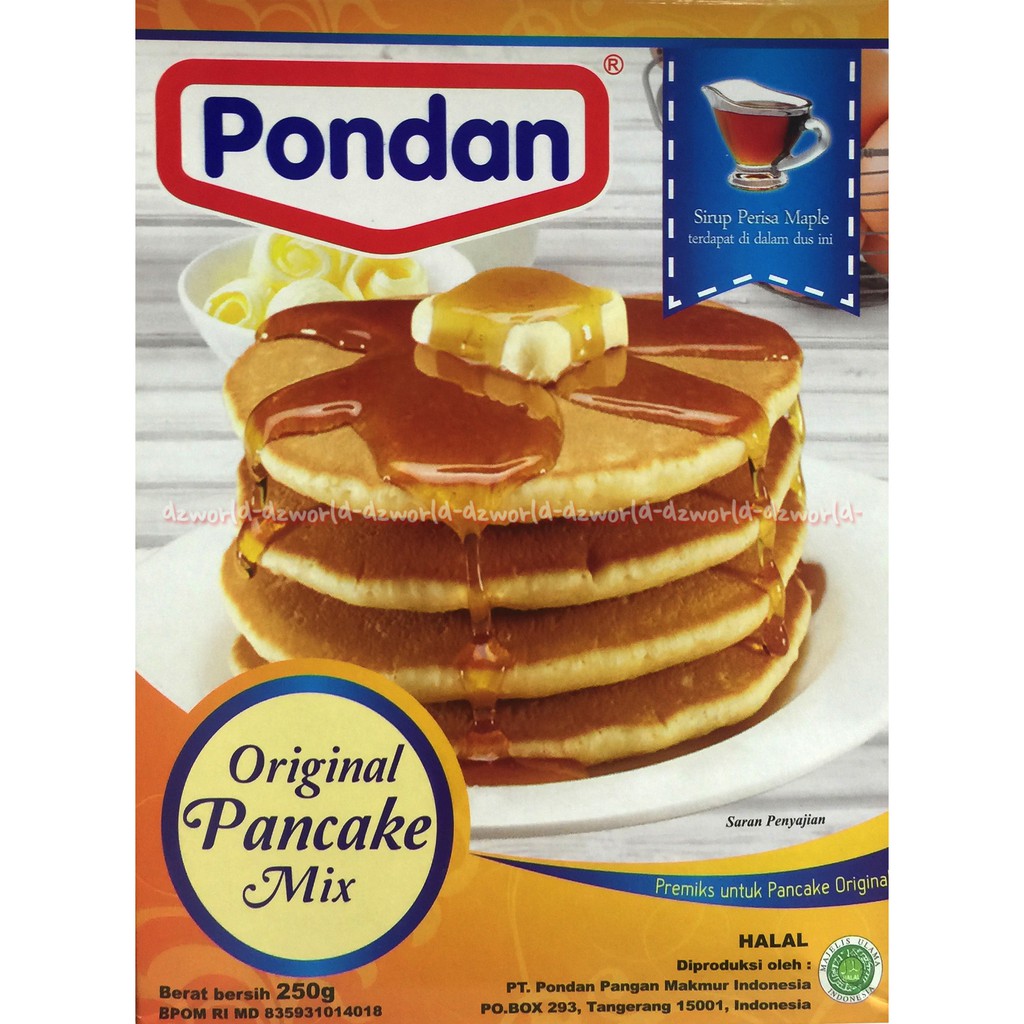 Jual Pondan Original Pancake Mix tepung Kue Instant Membuat Penkek dengan harga Rp32500 dari toko online DZ-world Jakarta Barat. Tuang 1 bks Pondan Pancake Mix Cokelat ke dalam mangkuk. 250 gram Pondan Pancake Mix.